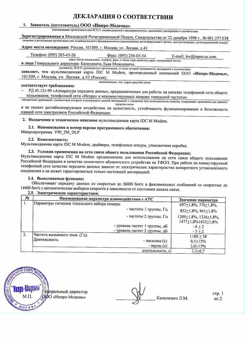 "Декларация о соответствии"